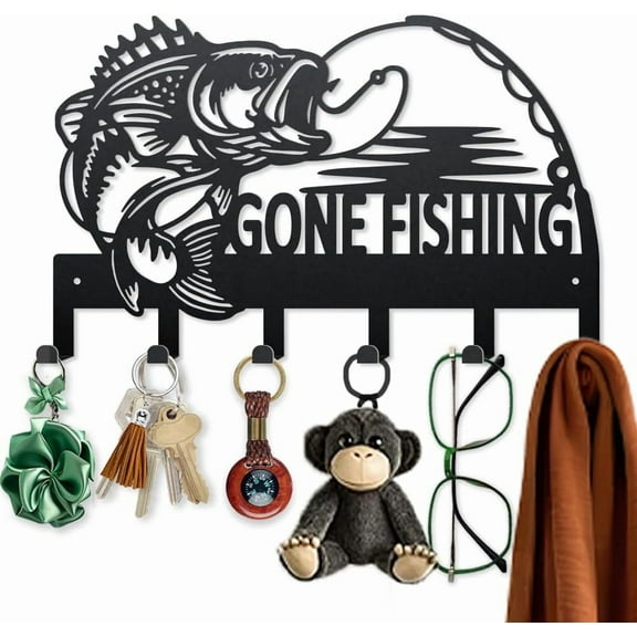 current price $17.99Gone Fishing Metal Key Holder Fish-Themed Wall Hook Rack for Entryway, Garage & Cabin Decor