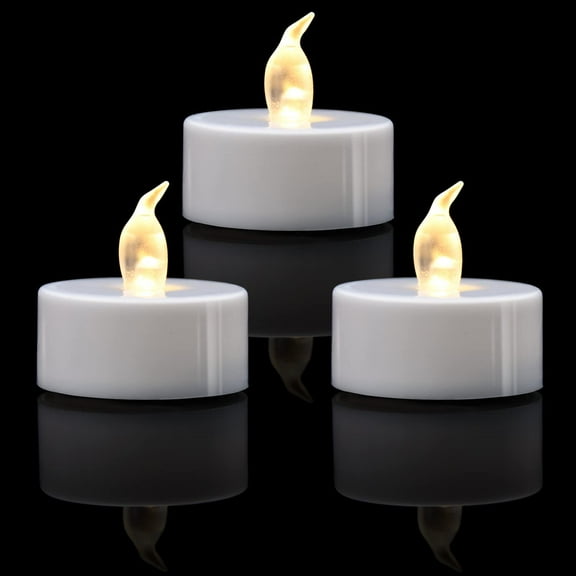 current price $12.90Realistic Bright Flameless LED Tea Light Candles, Bright, Flickering, Battery Powered Fake Candles, Unscented Tea Lights, Pack of 24