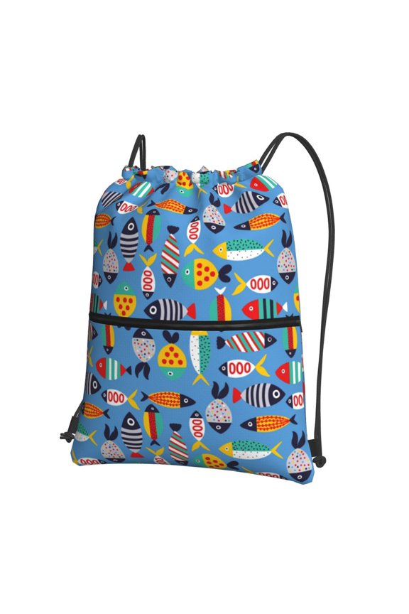 Cute Flat Fish Pattern Durable Canvas Backpack for Men & Women – Stylish & Lightweight – Adjustable Straps, Multiple Pockets – Fits 15-17 Inch LaptopsSmallCute Flat Hand Drawn Fishes Drawstring Backpack String Bag Cinch Water Resistant for Gym Shopping Sport Yoga $21.99