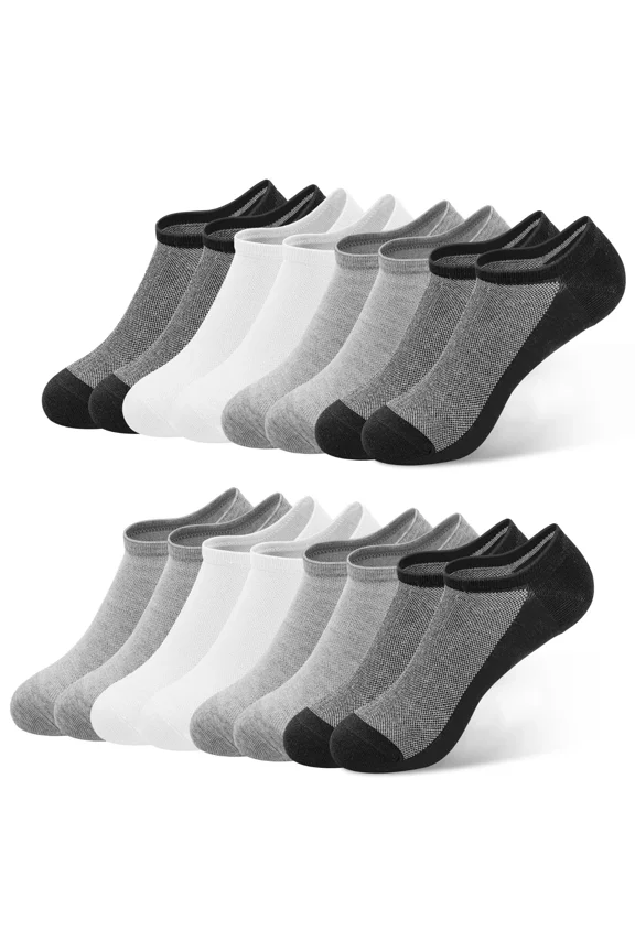 No Show Socks for Men:Athletic Invisible Cotton Blend Liners-Anti Slip Grip & Cushioned Sole for Gym Walking Travel & Outdoor Training-6 Pairs Black White Gray Size L5 Pairs Women's No Show Socks Non Slip Low Cut Ankle Liner Socks Breathable Mesh Invisible Socks for Flats, Loafers, Sneakers, Dress Shoes, One Size Fits Most $6.84