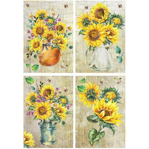 European Excellency, Floral Decoupage Paper for Furniture and Crafts, Floral Rice Paper for Decoupage, Scrapbooking Paper, Arts & Crafts Supplies, A4 (Sunflowers Bouquets - 2 Sheets) From $9.49