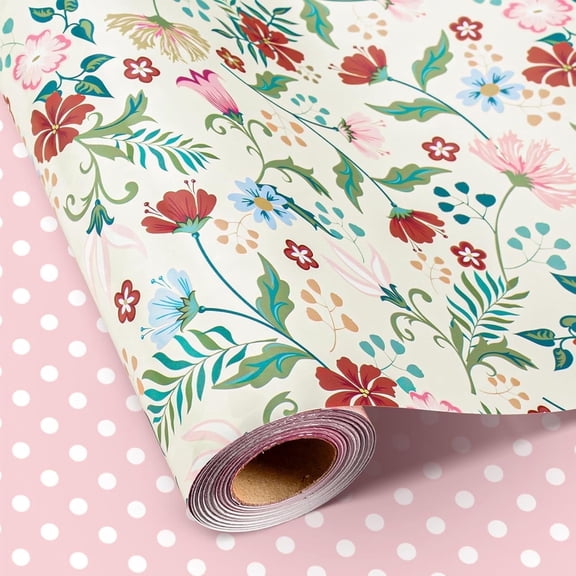 HOMERAL Floral Wrapping Paper Roll with Pink Polka Dots Reverse- 17 In X 32.8 Ft(46.5 sqft) Vintage Warm Flower Design Gift Wrap for Mothers Day, Valentines Day, Birthday, Wedding, Anniversary From $11.39