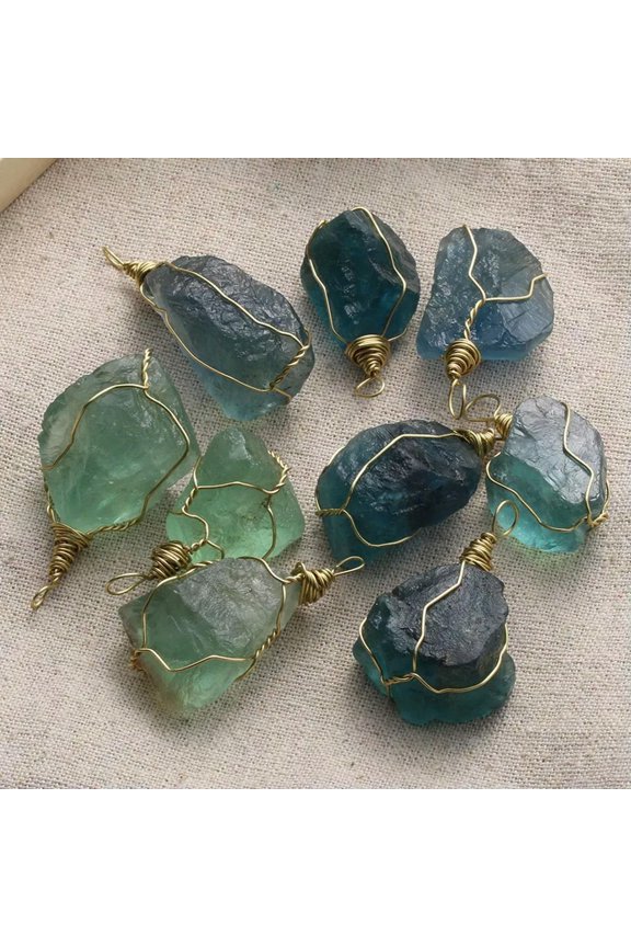 10Pcs Natural Green Fluorite Quartz Crystal Pendant Rough Gemstone Reiki Amulet10pcs Fluorite Gems stone Heart Pendants Chakra Reiki Healing Amulet Energy $23.99