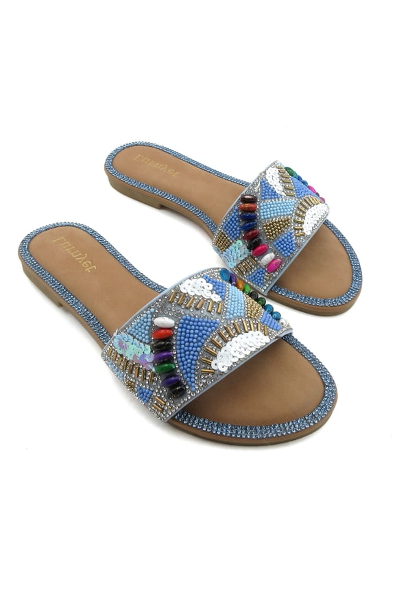 Aerosoft Violet Women’s Flat Thong Flip-Flop Sandals – Comfortable Lightweight Summer Slide SandalsWomen’s Embellished Slide Sandals Open Toe Flat Sandals Rhinestone Beaded Slip On Summer Sandals Fashion Casual Sandals for Beach, Vacation & Daily Wear From $23.99