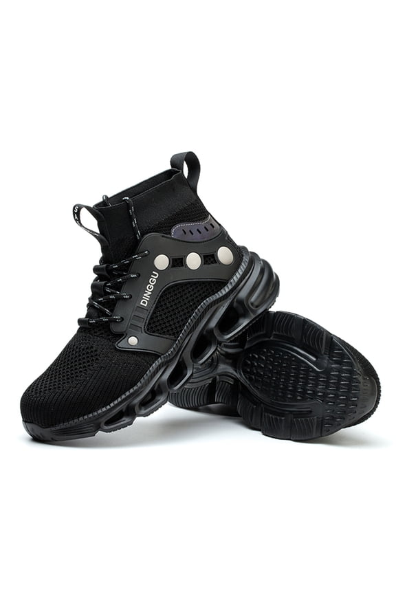 Fly-knit breathable running shoes - BlackSafety Shoes for Men Anti-Impact & Anti-Puncture High-Top Steel Toe Work Boots Protection Footwear Flyknit All-Season Style