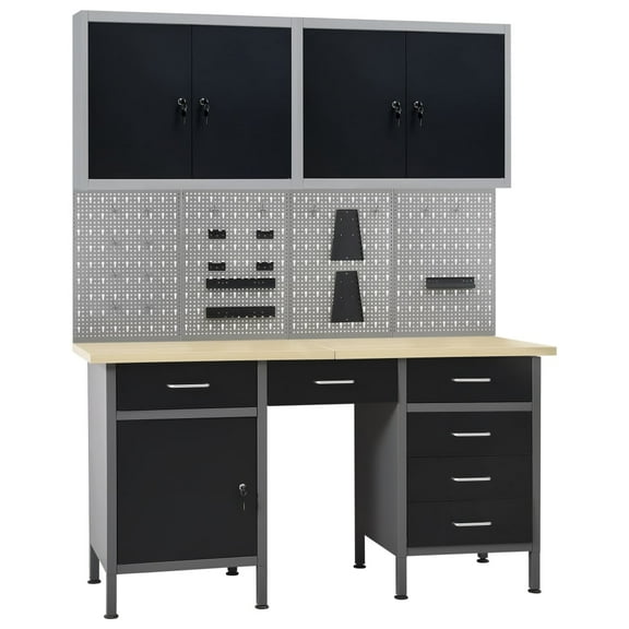 vidaXL Workbench with Four Wall Panels and Two Cabinets
