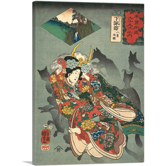 ARTCANVAS Princess Yaegaki with Fox Shadows Canvas Art Print by Utagawa Kuniyoshi - Size: 12" x 8" (0.75" Deep) From $42.99