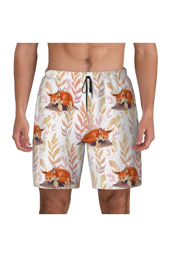 Cute Fox Pattern Swim Trunks Quick Dry Beach Pool Board Shorts Lightweight Stylish Print Sizes 2T to XLBeautiful Fox Print Mens Swim Trunks Quick Dry Board Shorts,Breathable Hawaii Beach Shorts Swimwear Bathing Suits-Large