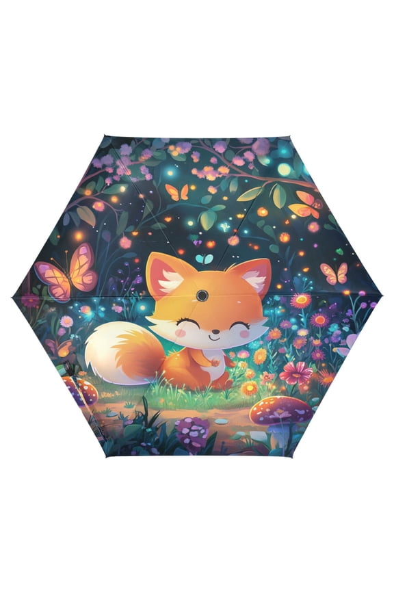 Cartoon Fox with Crown All Weather Umbrella Triple Folding Parasol 6 Ribs UV Protection PortableOne-Touch Auto Open Close Rain Umbrella With Creative Fox with Glowing Eyes Pattern $29.99