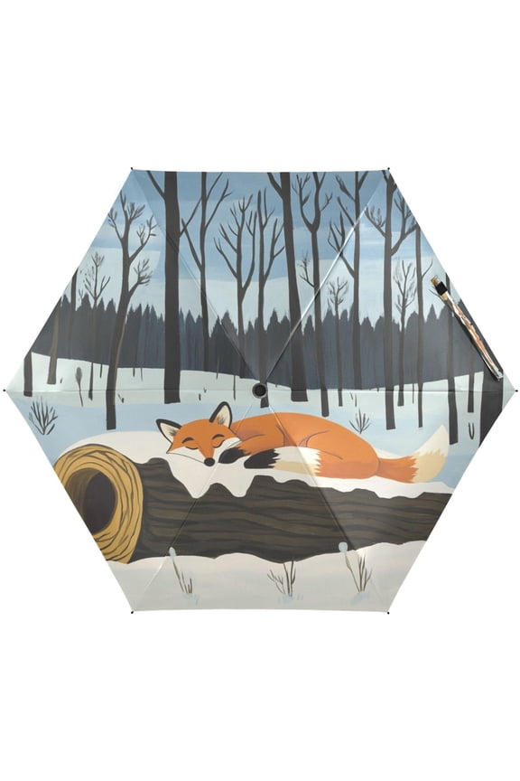 Cartoon Foxes in Snowfield Trees All Weather Umbrella Triple Folding Parasol 6 Ribs UV Protection PortableCute Foxes in Winter Leaves Snow All Weather Umbrella Triple Folding Parasol 6 Ribs UV Protection Portable $23.99