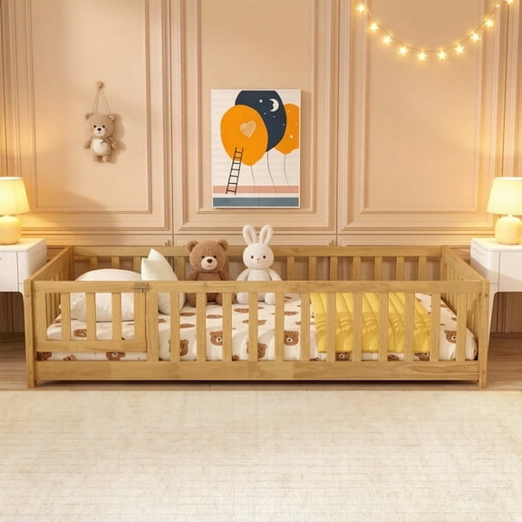 Advwin Twin Floor Bed with Gate, Safety Rails, Blackboard, Bookshelf & Toy Storage, Sturdy Wooden Platform Bed Frame, White From $184.98