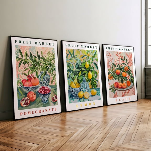 UNFFRAMED Botanical Fruit Posters Set, Pomegranate, Lemon, And Peach, Fruit Market Wall Art, Kitchen And Dining Room Wall Art, Fruit Illustration Set 3 Prints 12x18 From $45.99