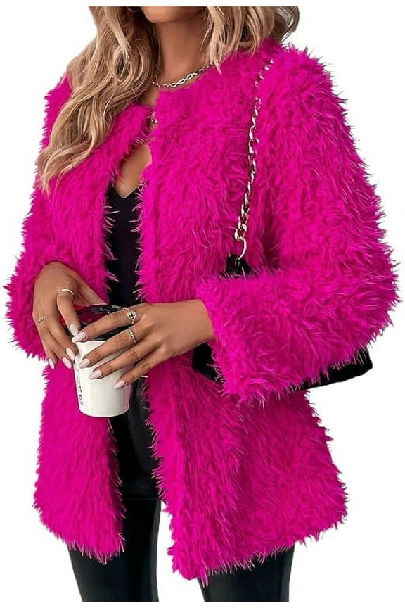 Women's Fashion Oversized Fleece-Lined Coat - Solid Color Long Sleeve Warm Jacket, Soft Comfortable Casual Outerwear, Fuchsia Size XXLFuzzy Coat Ethnic Print Long Sleeves with Zipper Casual Warm Winter Pullover Fuzzy Coat for Women Fuchsia S $24.99