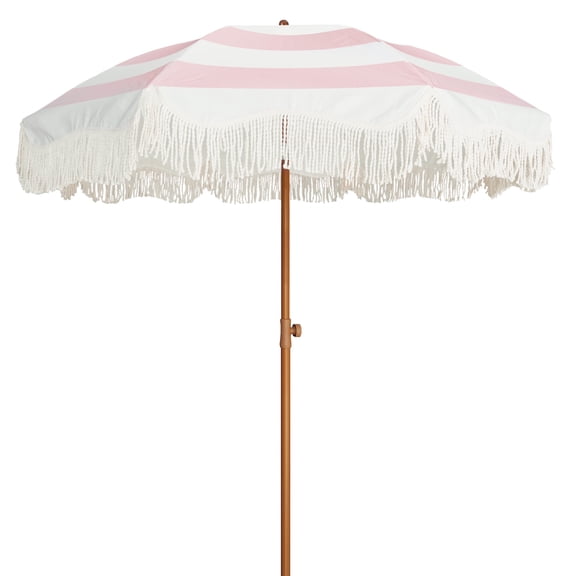 AMMSUN 6.5ft Patio Umbrella UPF50+ with Boho Fringe Tassel Tilt Pole for Outdoor Picnic,Pink Stripes From $68.85