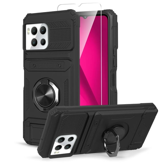 Thousandgear for T-Mobile Revvl 7 Pro 5G Phone Case, with Tempered Glass Screen Protector, Credit Card Holder, [Military Grade] Robotic Magnetic Support Car Mount Metal Ring Holder Kickstand Cover From $12.95