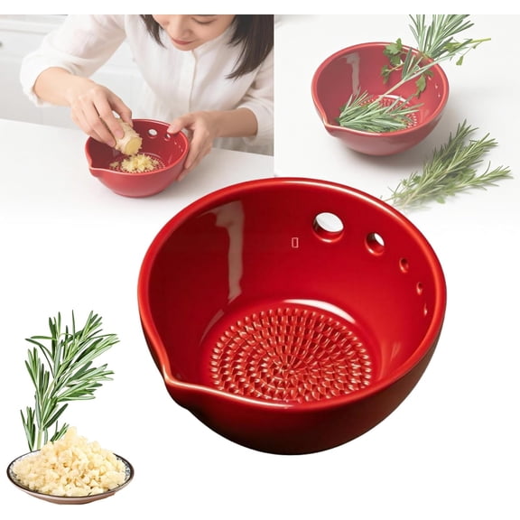 current price $16.98Handmade Garlic Grater & Herb Bowl, Garlic Grinder Plate Multi-functional Kitchen Tool, Efficient Stoneware Herb Stripper Grater Dish