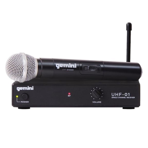 Gemini, 1 Professional Audio DJ Equipment Superior Single Channel Wireless UHF System and Handheld Microphone with 150ft Opereating Range, (UHF-01M F4)