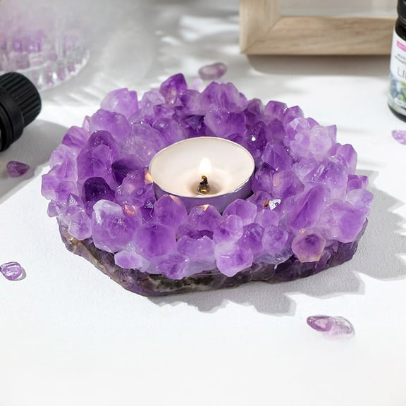 1pc Natural Uruguay Amethyst Geode Candle Holder|300g Energy Altar|300 ℃ Heat-Resistant