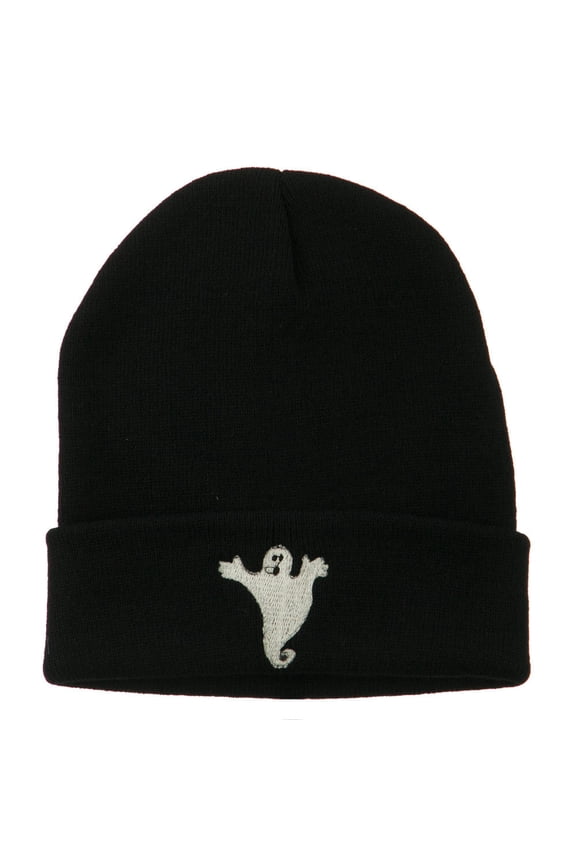 Halloween Spooky Ghost Embroidered Long Beanie - Black OSFMMen's Ghost Hat Gray One Size Fits Most