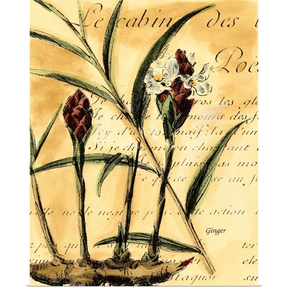 Ginger Plant Flower Root - Vintage Botanical Illustration Poster Wall Art, Modern Wall Decor For Living Room Bedroom, 16x24 UNFRAMED From $16.49