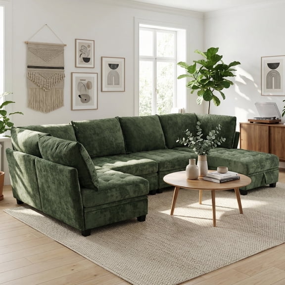 Noodeniya 122" Modular Sectional Sofa with Arm Storage, Velvet U Shaped Living Room Couch with Double Cushion, Green$659.00current price $659.00Meridian Furniture Indulge 199" Linen Fabric U-Shaped Modular Sectional in Gray
