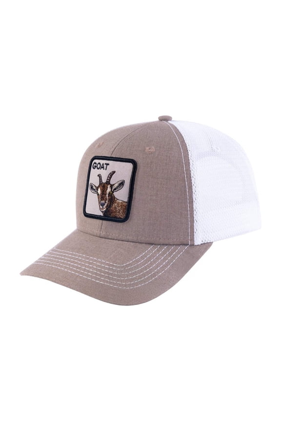 Unisex Embroidered The Goat, 6-Panel Trucker Hat, Light Brown/White, Adjustable Fit $19.99
