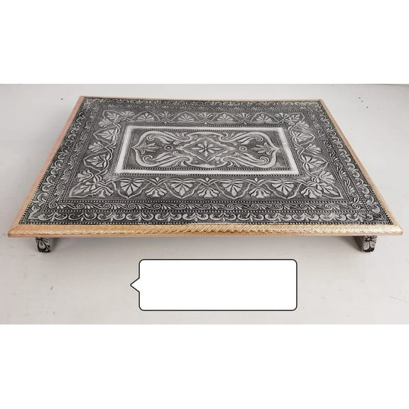 current price $188.00Indian Traditional Bajot Oxidized Patla Sitting Stool for God Wooden Patla End Table Diwali Pooja Chowli Decorative Wooden Chowki Handmade Pooja Bajot Religious Gift Pooja Table - AtoZ India Cart