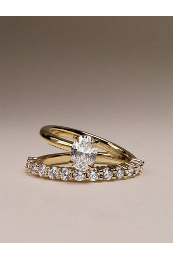 Oval Solitaire Wrap 14K Solid Gold Wedding Band0.12 Ct Round Cut Lab-Created Diamond Solitaire Enhancer Ring Wrap In 14k White Gold Plated Silver $55.00