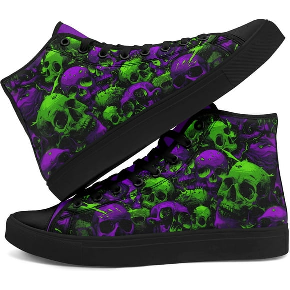 Skull High Top Canvas Sneakers for Men Women, Gothic Floral Print Streetwear Casual Fashion Skate Shoes
