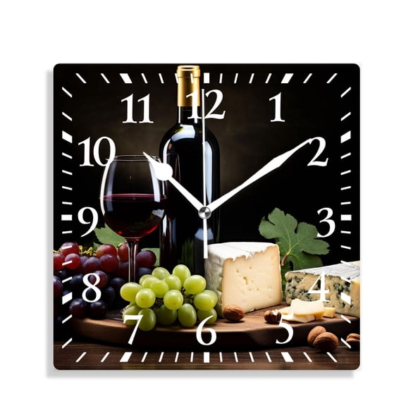 current price $29.9014 Inch Wall Clock Battery Operated Square Clock Decorative for Office, Kitchen, Outdoor, Living RoomWine and Grapes Print