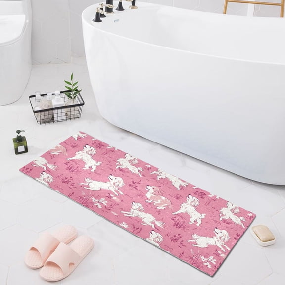 Haosy White Dogs on Pink Grass Bathroom Rugs Non Slip Absorbent Soft Plush Quick Dry Bath Mat, 39"x20" From $19.88 Was $26.99