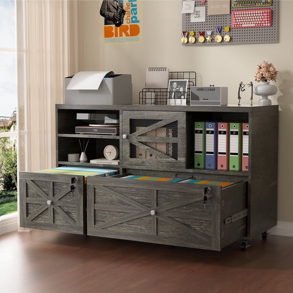 Reduced price Modfurne 2 Drawer Lateral File Cabinet with Lock, Rolling Filing Cabinet for Home Office Fits Files Letter/Legal/F4/A4 (Gray) From $119.99 Was $169.99