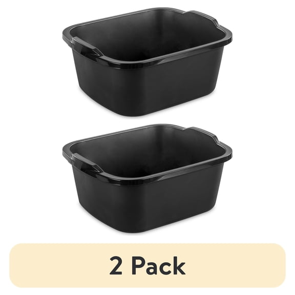 (2 pack) Sterilite 18 Qt. Dishpan, Multi-Purpose Plastic Wash Tub, Kitchen, Sink, Black