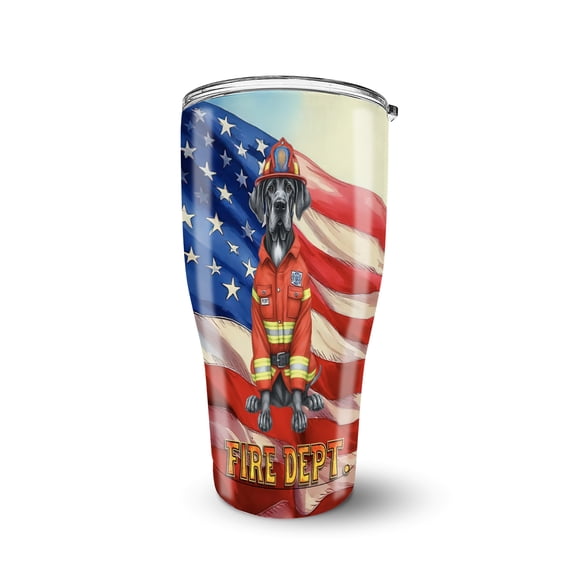 Firefighter Great Dane Hero Rescue Fire Dept Fireman USA Flag 30oz Stainless Steel Tumbler Insulated Cup with Lid Danes Dog Lover Gifts - 02026 From $21.99
