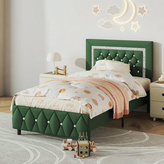 4 EVER WINNER Twin Size Upholstered Bed with Diamond Headboard and Footboard, Green From $159.99