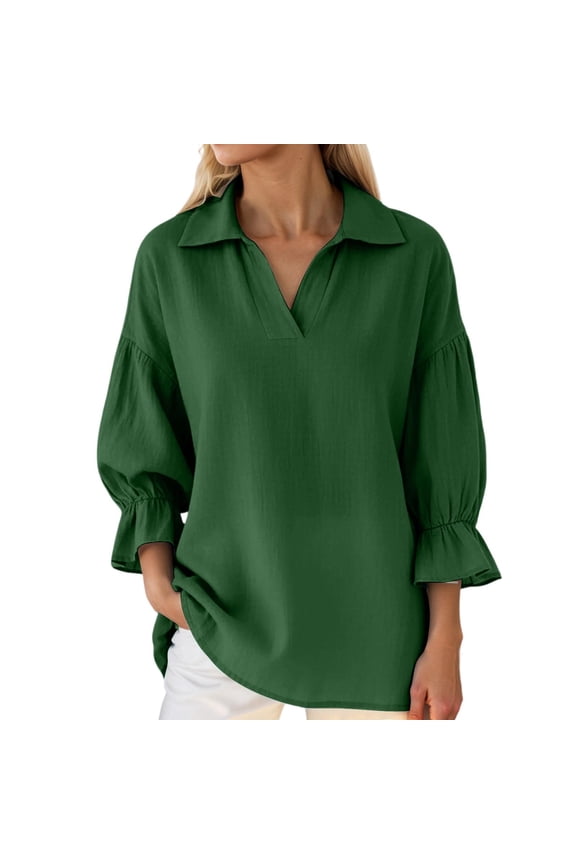 Stylish OD Green Ladies' Tops for Everyday Comfort, Size L Long Sleeve Button-Tunic BienvenidoWomens Blouse V-Neck Dark Green Long Sleeve $14.99