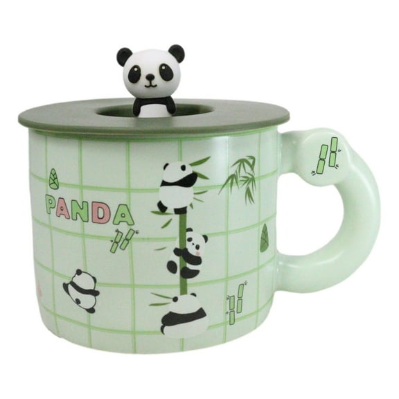 current price $18.00Acrobatic Green Panda Bears Green Mug With Anime Panda Figurine Handle Lid