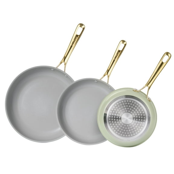 Chef Power 3 Pcs Non-Stick Ceramic Pots and Pans Set, with Stainless Steel Light Gold Handles, Sage Green, Dishwasher and Oven Safe From $39.99