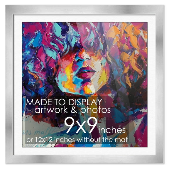 9x9 Silver Frame Matted for 9x9 Picture or 12x12 Art Poster Without Photo Mat - Display Your 9 x 9