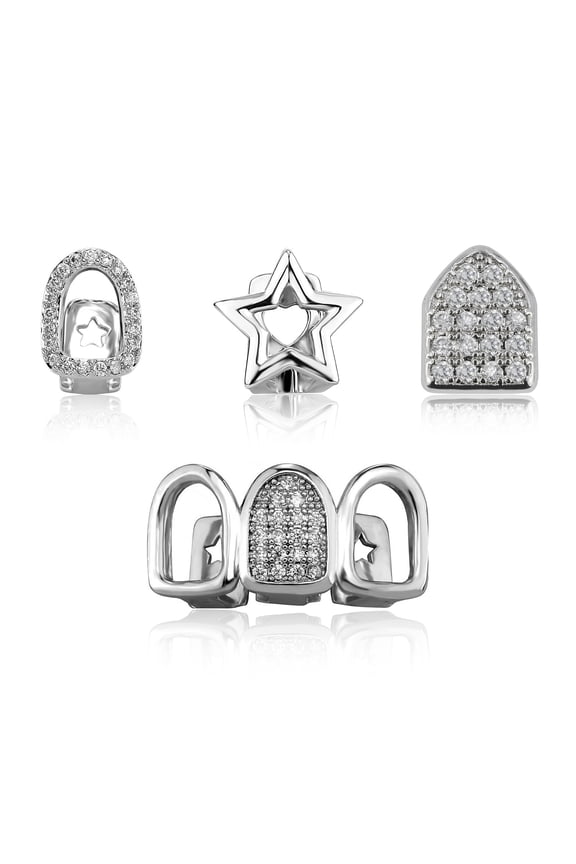 4PCS Gold & Silver Hip Hop Grillz Set, Iced-Out Design with Cubic Zirconia, Removable Party Rapper Teeth Jewelry for Men and Women13 out of 5 Stars. 1 reviews
