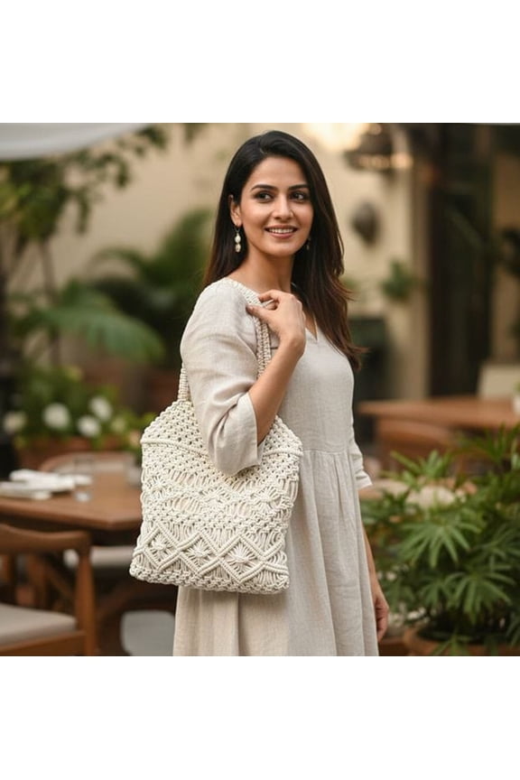 Straw Beach Bags for Women - Women Beach Handmade Woven Tote Bag, Summer Mesh Hollow Shoulder Bag for HolidayFibre Gold Handwoven Macrame Tote Bag for Women | Cotton Eco-Friendly Shoulder Handbag From $49.00