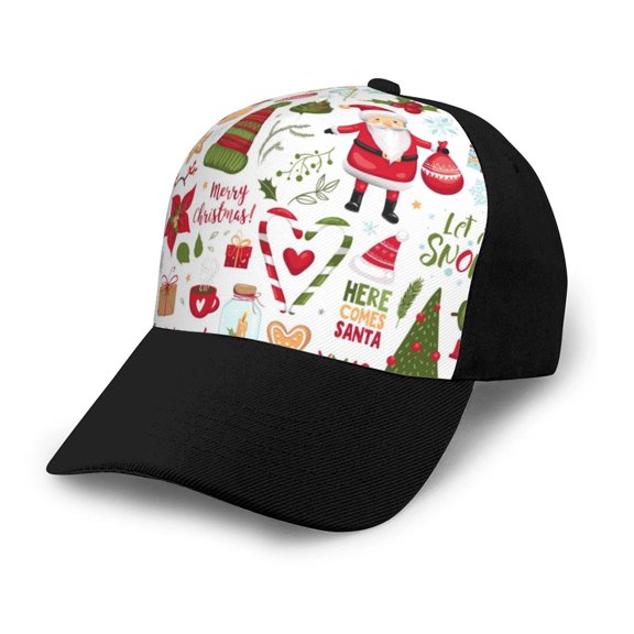 Available in additional 5 optionsNaloa Snowflakes Santa Claus Adult adjustable Print Baseball Hat, Patchwork curved brim baseball capfor Men and Women, One Size