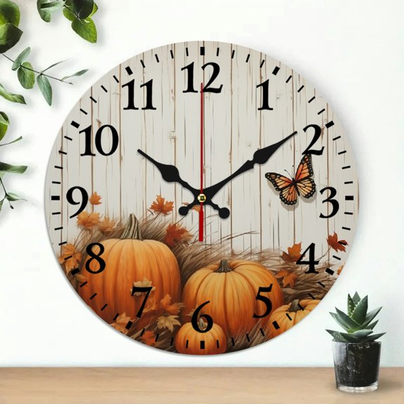 PRATYUS Pumpkins Hay Butterfly Print Wall Hanging Decor for Living Room, Kitchen, Dorm - 10 Inch Silent Frameless Analog Clock 10x10in