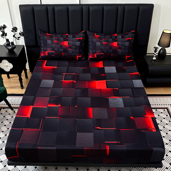 3PCS Fitted Sheet Set, Deep Pocket, Tech Grid Pattern, HD Printing, for Bedroom & Dorm