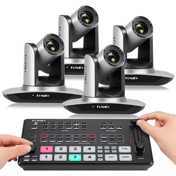 current price $1,262.00FoMaKo AI Auto Tracking HDMI PTZ Camera, 20x Optical Zoom,KC602 Video Switcher,for Church,News Anchor Studio Live Streamng and Live Production(FMK12UH Pro-BX2+KC602)