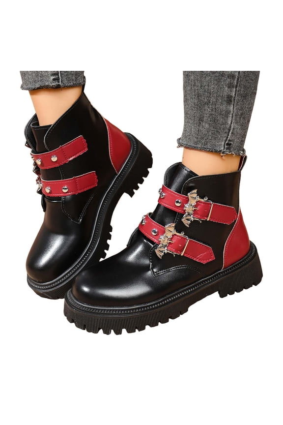 Women's Ankle Boots - Casual Versatile Design with Heart-shaped Buckle Accents and Contrast Color Detailing, Trendy Chunky Heel for Autumn/Winter Fashion FootwearWoman's Versatile Stylish Heart-shaped Buckle Decor Ankle Boots, Trendy Chunky Heel for Autumn/Winter, Fashionable and Comfortable for Daily Wear From $32.99