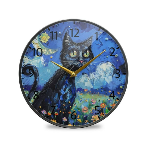 BZSMCE Wall Clock Acrylic Size:9.5*9.5in/11.9*11.9in Moonlit Kitty Dreams Design Pattern Clock From $27.99