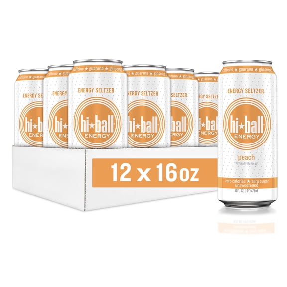 HiBall Clean Energy Drink, Zero Sugar Caffeinated Seltzer Water, Peach 16oz, USA, 12 pack From $35.88