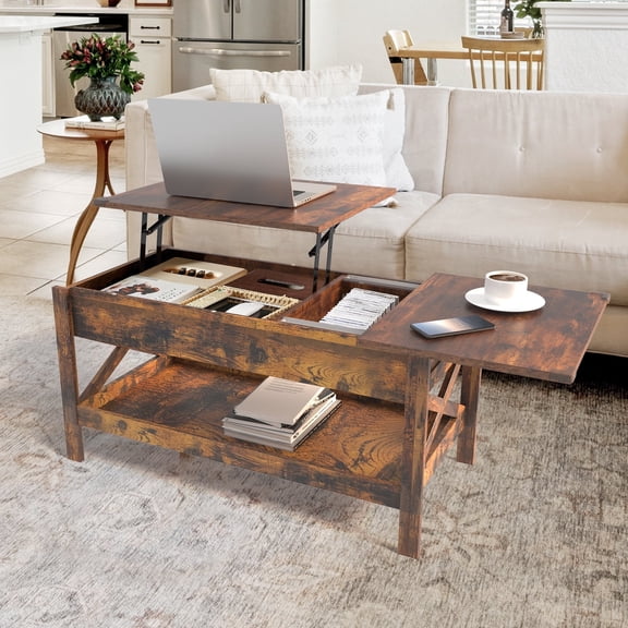 MCQ Wood Lift Top Coffee Table, With Large Hidden Compartment and Storage Shelf, For Home Living Room Office, Aged Wood From $56.99