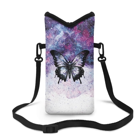 SEANATIVE Small Crossbody Wallet Phone Bag Waterproof Mini Cell Phone Purse Shockproof Pouch Shoulder Bag with Shoulder Strap for Traveling, Beach, Walking, Hiking, Butterfly Galaxy Violet White